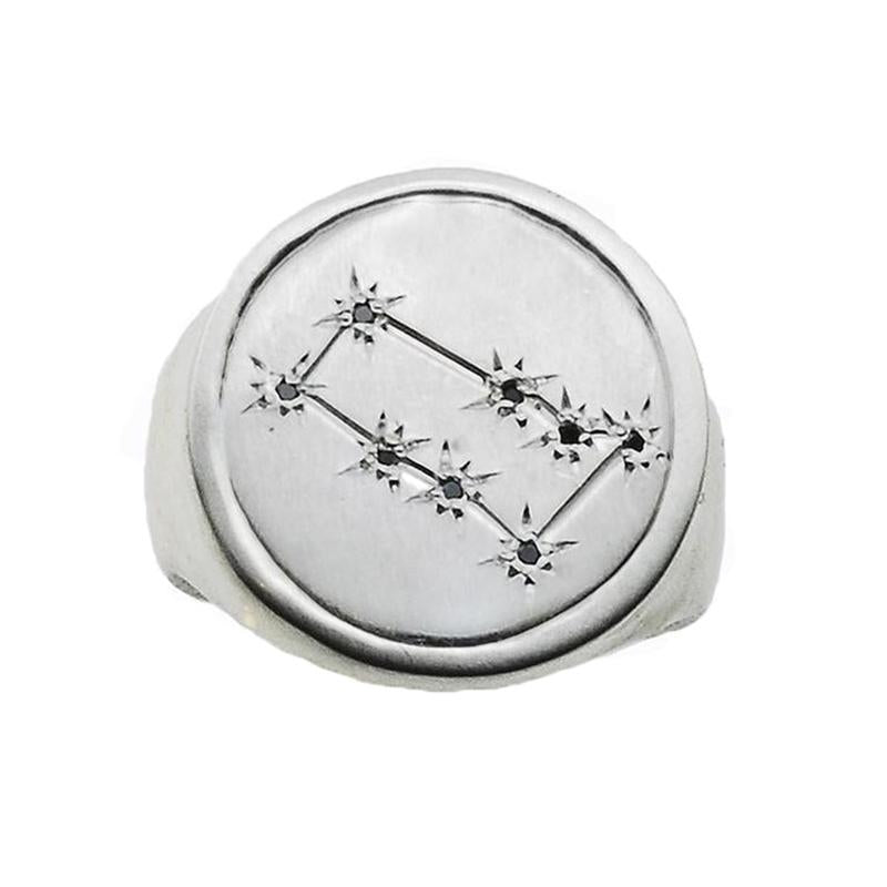 Zodiac Ring in Silver with Black Diamond